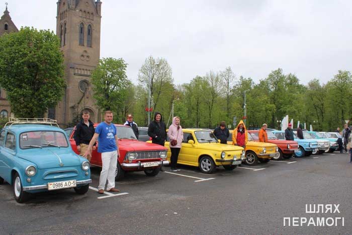 В один из майских дней Центральная площадь нашего города неожиданно запестрела яркими красками. Белый, голубой, оранжевый, красный, жёлтый… Повторов в расцветке «запорожцев», выстроившихся в ряд, не было. Вилейка гостеприимно встречала участников «ЗАЗ-слёта».