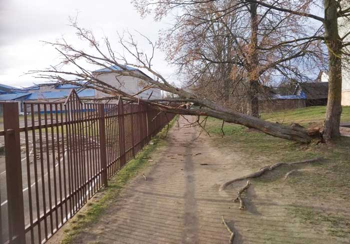 Фотофакт: из-за сильного ветра в Вилейке упало дерево