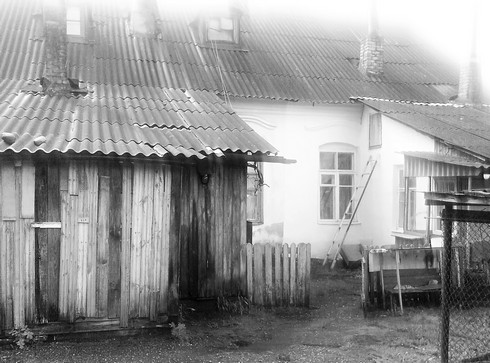 Наиболее похожим оказался жилой четырехквартирный дом по улице Советской 26, расположенной за военкоматом. Рассматривая фасад этого здания, можно увидеть многие знакомые элементы. Закругленные вырезы под окна, закругленные козырьки над ними. Но, вместе с тем, здесь нет трех окон, расположенных подряд. В центре здания расположена входная дверь, да и сами проемы между окнами визуально меньше, чем на фото. И здание на данный момент поштукатурено. Обратная сторона здания подверглась коренной перестройке, и внешний вид ее сильно изменился. Тут достроены две веранды и сохранилось только два окна по центру.