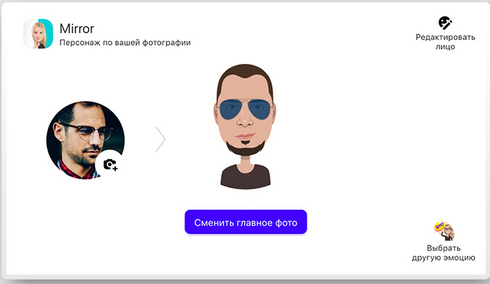 С помощью нейросетей и технологии распознавания лиц Mirror AI анализирует фото пользователя, определяет палитру эмоций, геометрию лица и создает набор персональных картинок-эмодзи.