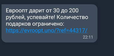 «Неизвестные предлагают пройти опрос, чтобы получить денежную сумму либо купон на продукты. Не поддавайтесь на провокацию! Подобная акция не проводится в сети магазинов «Евроопт»!», говорится в сообщении.
