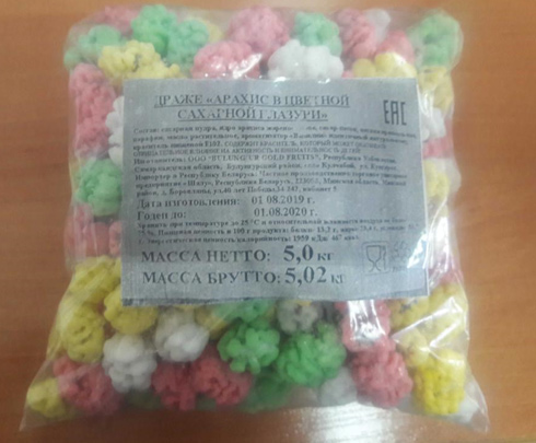 Продукция не соответствует требованиям технического регламента Таможенного союза по маркировке в части предоставления достоверной информации о составе продукта и отсутствию предупреждающей надписи о наличии красителей, влияющих на активность и внимание детей. Фактически в состав пищевого продукта входят обнаруженные в результате проведенных испытаний незаявленные изготовителем в маркировке синтетические красители; отсутствует предупреждающая надпись «Содержит красители, которые могут оказывать отрицательное влияние на активность и внимание детей».