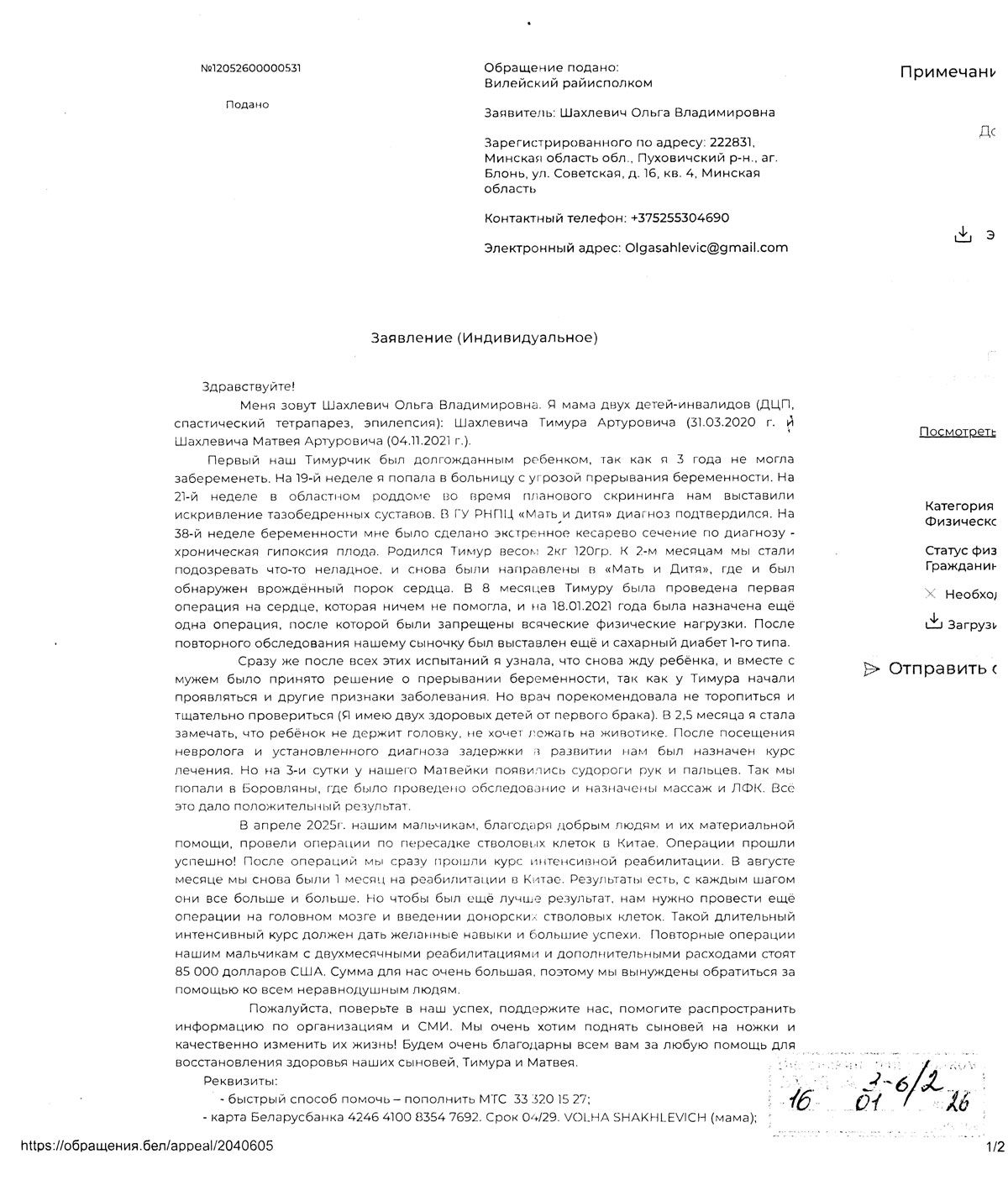 Тимур и Матвей Шахлевич нуждаются в помощи 20 января 2026 | Просмотров: 586 Полная перепечатка текста и фотографий без письменного согласия главного редактора "Шлях перамогі" запрещена. Частичное цитирование разрешено при наличии гиперссылки | Условия использования материалов Continue Reading Далее Меньше жалоб, больше консультаций. В ЖКХ рассказали, сколько заявок подали вилейчане в 2025-м годуВозврат В Слуцке чествовали работников социальной защиты Минской области Добавить комментарий Отменить ответДля отправки комментария вам необходимо авторизоваться. НОВОСТИ РУБРИКИ Меньше жалоб, больше консультаций. В ЖКХ рассказали, сколько заявок подали вилейчане в 2025-м году Фоторепортаж: морозная сказка в Вилейке Смотрите, какая снегоуборочная машина появилась на службе у Вилейского ЖКХ Узнали, когда в Вилейке отключат новогоднюю иллюминацию Вилейский танцевальный коллектив принял участие в молодежном балу в Солигорске В День спасателя в Вилейской СШ №3 почтили память героя-выпускника