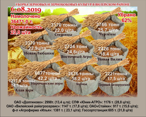 Ход уборочной в Вилейском районе на 6 августа 7 августа 2019 | Просмотров: 32 Полная перепечатка текста и фотографий без письменного согласия главного редактора "Шлях перамогі" запрещена. Частичное цитирование разрешено при наличии гиперссылки | Условия использования материалов Continue Reading Далее У Вілейскім раёне адзначылі тысячнікаў на жнівеВозврат Ход уборочной в Вилейском районе на 7 августа Добавить комментарий Отменить ответДля отправки комментария вам необходимо авторизоваться. НОВОСТИ РУБРИКИ У Вілейскім раёне адзначылі тысячнікаў на жніве Хвіліну адпачынку на жніве работнікам "Новая Любанія" падаравалі куранецкія артысты Ход уборочной в Вилейском районе на 4 августа Ільянскія артысты павіншавалі хлебаробаў Первые тысячники на уборочной: в "Нарочанских зорях" - два экипажа, в "Новой Вилии" - водитель Жніво ў разгары... Хай збываюцца мары!