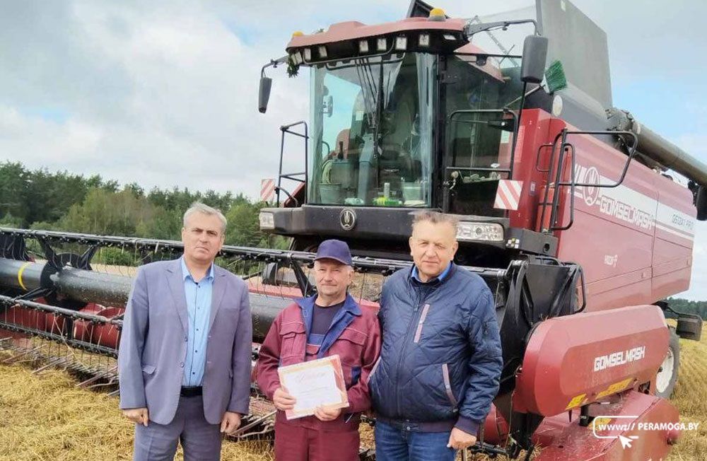 В Вилейском районе 26 августа председатель Минской областной организации работников жилищно-коммунального хозяйства и сферы обслуживания Гуринович Владимир чествовал комбайнёра Казинца Василия, который пришёл на помощь в уборке урожая 2025 года.