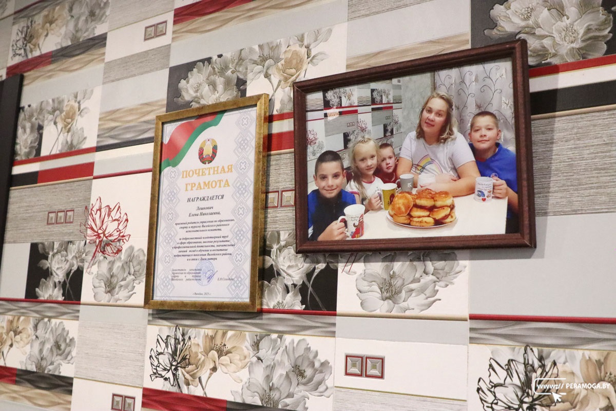 Во время визита гости познакомились с жизнью семьи, в которой сегодня воспитываются шестеро детей. Самому старшему сыну Егору исполнилось 14 лет, а младшему Марку – три года. С искренним интересом ребята рассказывали о своих увлечениях и успехах в учебе. Например, Егор умеет играть на баяне и любит активные виды спорта: волейбол и футбол. А еще он во всем помогает по дому и, как призналась его бабушка, является ее правой рукой. Единственная в семье дочь Милана увлекается плетением из бисера, Захар любит рисовать… О том, что в семье каждый в чем-то уникален, говорят грамоты и дипломы, которые можно увидеть в комнатах. А на вопрос, сложно ли справляться с детьми, Елена отвечает просто: «Я сама выросла в многодетной семье, поэтому для меня это привычно. Летом в нашем доме еще больше детей, когда в гости приезжают племянники… Вот скоро и к новогодним праздникам будем готовиться. По традиции поставим живую ель до самого потолка и вместе будем украшать…». Вот так жизнь в семье Лешкович идет своим чередом, наполняясь новыми событиями и впечатлениями.