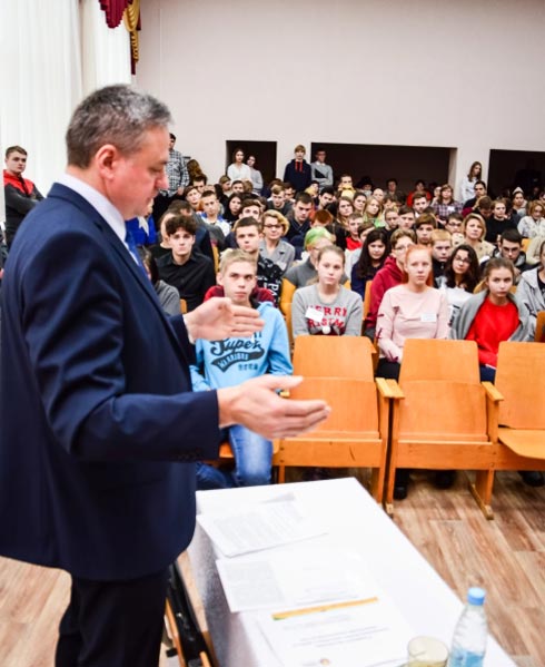 Владимир Алексеевич Самсонович высоко оценил уровень организации встречи, активность учащихся и пожелал ребятам стать хорошими специалистами, достойными гражданами своей страны, от активной жизненной позиции которых, их созидательного труда зависит как личное благополучие, так и процветание Республики Беларусь.