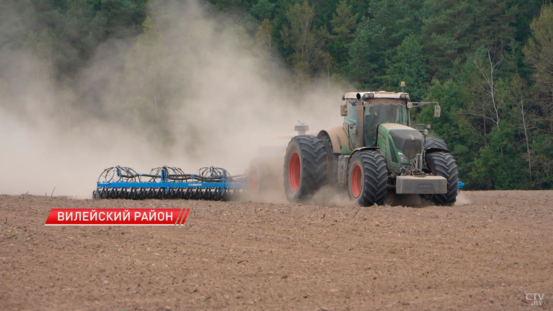 В хозяйствах Вилейского района работа кипит. Задача внести семена до начала заморозков. В сельхозпредприятии «БК-Милк» в день высевают порядка 200 гектаров озимой пшеницы. Параллельно завершают уборку рапса. Зерновой клин убран с полей на 100 %. В этом году, несмотря на прохладную погоду, урожайность порадовала.