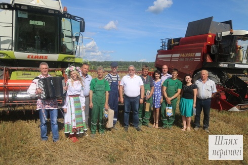 А вось і героі дня. Роўненька паставіўшы свае волаты-машыны, камбайнеры падышлі да краю поля, дзе іх ужо чакалі. Сямейны экіпаж Гарэлікаў другі год узначальвае ўжо сын, змяніўшы ў гэтай ганаровай справе бацьку. Аляксандр Мікалаевіч і Мікалай Аркадзьевіч, ужо па добрай традыцыі, ішлі да намечанага сур’ёзна і мэтанакіравана. І вось ён, першы рубеж, дасягнуты. А наперадзе яшчэ столькі спраў! Як і ў працавітага маладзёжнага экіпажа ў складзе Руслана Садоўскага і Аляксея Драчылоўскага, які таксама на працягу многіх гадоў радуе сваімі поспехамі. Дастойна, з веданнем цаны сваёй высакароднай справы падышлі камбайнеры, каб пачуць словы віншаванняў і найлепшых пажаданняў. Усіх іх павіншавалі Віктар Кот, Леанід Радзевіч, Анастасія Чарняўская і Любоў Марціненка, уручыўшы дыпломы і падарункі. А пасля музычнымі падарункамі парадавалі артысты, стварыўшы хлебаробам адпаведны настрой. І вось ён, урачысты момант: тысячнікі прымацоўваюць на свае камбайны ганаровыя надпісы, па якіх кожнаму бачна, што на гэтай тэхніцы працуюць самыя старанныя, кваліфікаваныя і заслужаныя. Хвіліна на сумесны фотаздымак – і зноў загулі камбайны, напаўняючы бункеры збажыной. Адлік у экіпажаў пайшоў ужо на другую тысячу.