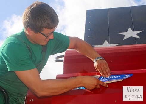 У гэты ж дзень мы наведаліся і ў адкрытае акцыянернае таварыства «Новая Любанія», каб павіншаваць першага ў раёне вадзіцеля-тысячніка Мікалая Хаткевіча, які на сваім «МАЗе» адвёз ад камбайнаў тысячу тон збожжа. Дванаццаць гадоў працуе вадзіцель у сельскай гаспадарцы і робіць сваю справу з душой, па-гаспадарску. На дзень нашага наведання «Новай Любаніі» тут ужо было ўбрана болей за семдзясят працэнтаў плошчаў, занятых зерневымі, аб чым нам расказаў кіраўнік гаспадаркі Арцём Віннік. Няхай сабе і не самы лепшы год сёлета па ўраджайнасці, але справа спорыцца, людзі працуюць, як кажуць, ад цямна да цямна. Яно і зразумела: жніво. І адзін з яго перадавікоў – Мікалай Хаткевіч, машыну якога зараз упрыгожвае ганаровы знак лепшага з лепшых.