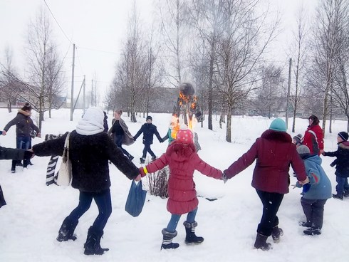 Забавы працягваліся і на вуліцы, дзе спалілі чучала Зімы, або Марэны, як сімвал гора, няшчасця і смутку. Свята атрымалася вясёлым, азораным радасным чаканнем ясных, цёплых дзён, напоўненых сонечным святлом.