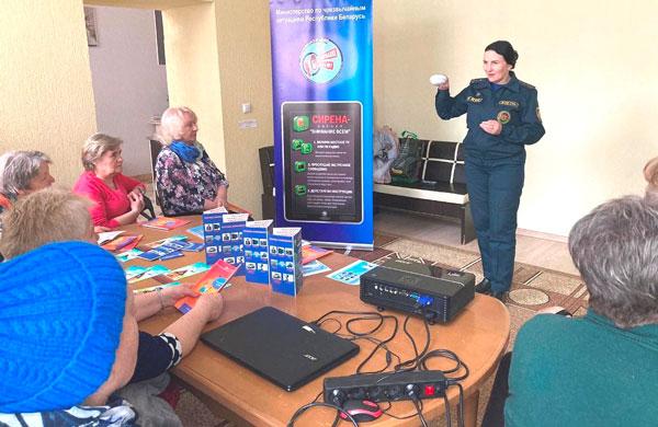 В рамках профилактической беседы инспектор сектора пропаганды и взаимодействия с общественностью районного отдела по чрезвычайным ситуациям Надежда Литвинович рассказала, как действовать по сигналу «Внимание всем!». Специалист остановилась на принципе действия автономного пожарного извещателя и поддержании его работоспособного состояния, напомнила порядок пользования первичными средствами пожаротушения, а также продемонстрировала многофункциональное мобильное приложение «МЧС Беларуси. Помощь рядом» и всем желающим помогла его установить на свои гаджеты.