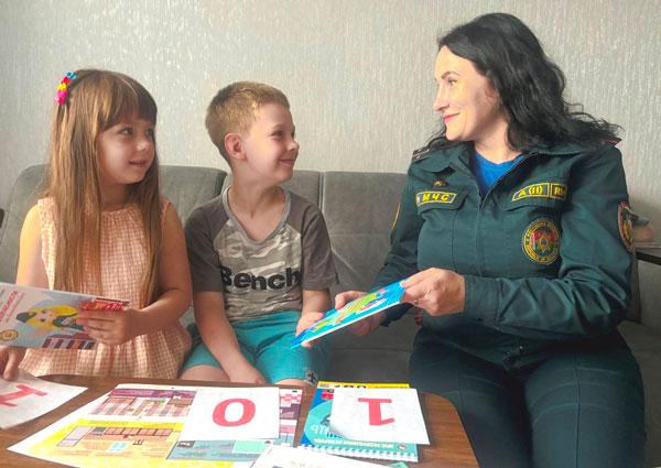 Инспектор сектора пропаганды и взаимодействия с общественностью Надежда Литвинович побеседовала с родителями о недопущении оставления малолетних детей без присмотра взрослых, а с детьми в игровой форме повторили правила безопасности, в ходе повторения которых рассказывали об опасностях, которые могут произойти в жилище, о причинах чрезвычайных ситуаций и как их избежать.