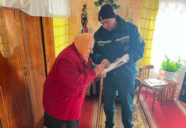 Специалисты определили состояние отопительных приборов, электропроводки и приборов, особое внимание обратили на наличие автономных пожарных извещателей, проверяли их работоспособность, при отсутствии их рекомендовали приобрести и установить, также рекомендовали установить на мобильный телефон полезное приложение МЧС Беларуси помощь рядом. Спасатели беседовали с гражданами о соблюдении правил безопасности жизнедеятельности. Так как одной из составляющих их работы является обучение населения навыкам безопасного поведения дома, на улице, на отдыхе в лесу и у водоемов.