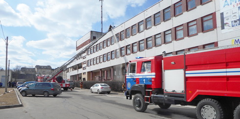Следующая вводная тактико-специальных учений, после проведения внеплановой эвакуации и проверки системы пожарной автоматики в магазине «Евроопт» ООО «Евроторг» по улице Чапаева, произошло возгорание в павильоне по продаже бытовой техники Дома быта по ул.17 Сентября, горения вышло на кровлю здания, в смежных помещениях павильона были пострадавшие.