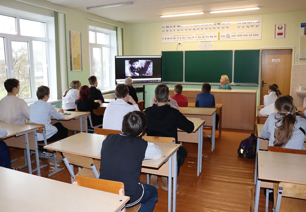 Экскурсоводы школьного краеведческого музея рассказали о трагических страницах в истории Вилейщины, о зверствах фашистов на территории Вилейского района. Ольга Александровна Колосова, сотрудник Вилейского краеведческого музея, подчеркнула, что преступления нацистов были ужасающими и оставили глубокую рану в памяти народа. Также ребятам продемонстрировали фильм «Дети войны», где они смогли узнать и прочувствовать все геройские поступки детей во время Великой Отечественной Войны.
