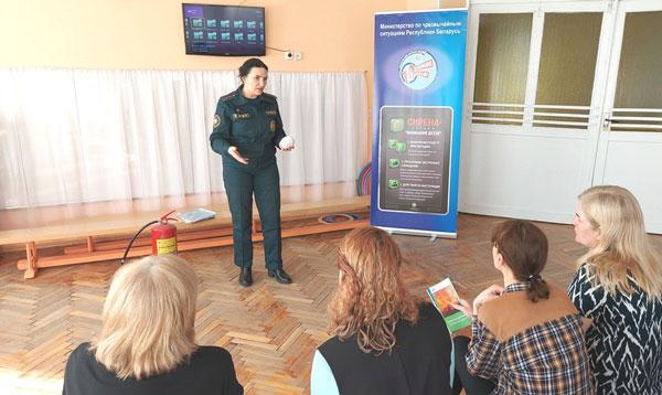 В рамках акции «День безопасности. Внимание всем!» работники районного отдела по чрезвычайным ситуациям провели встречу с трудовым коллективом учреждения образования «Детский сад № 7 г. Вилейки» по отработке действий в случае выброса химически опасных веществ. Проводилась встреча здесь не случайно, так как это дошкольное учреждение образования одним из первых попадает в зону химического заражения при аварии на молокозаводе.