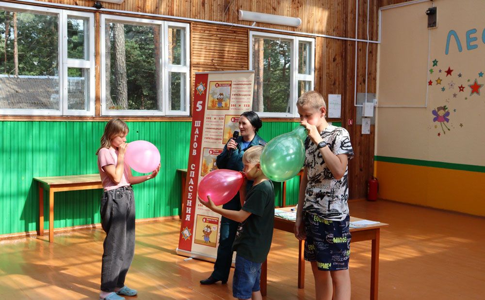 С ребятами повторили, как необходимо вести себя на водоемах, как правильно собраться в лес. Также работники МЧС напомнили ребятам про шаги спасения: как вызвать помощь в случае беды, как правильно эвакуироваться с задымленной зоны, что говорить диспетчеру когда хотят сообщить о беде. Основное внимание было уделено купанию в водоемах. Дети с удовольствием принимали участие в тематических конкурсах, предложенных спасателями.