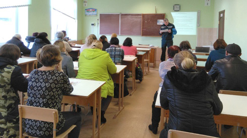 Начальник районного отдела по чрезвычайным ситуациям Александр Яхимович встретился с работниками Вилейского районного исполнительного комитета, первый заместитель начальника отдела Анатолий Стреж побеседовал с трудовым коллективом Вилейской гимназии №2, заместитель начальника отдела Евгений Шалухо выступил на родительском собрании Куренецкой средней школы, а заместитель начальника отдела Сергей Крачковский провел встречу с жителями деревни Слипки Кривосельского сельского Совета.