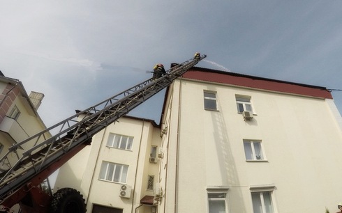 По тактическому замыслу произошло загорание в приемной руководителя объекта, в результате чего наблюдалось сильное задымление в смежных помещениях, горение вышло на кровлю здания. К месту вызова были направлены силы и средства Вилейского РОЧС. Для тушения условного пожара создавались звенья ГДЗС, огнетушащие средства на кровлю подавались по установленной автолестнице.