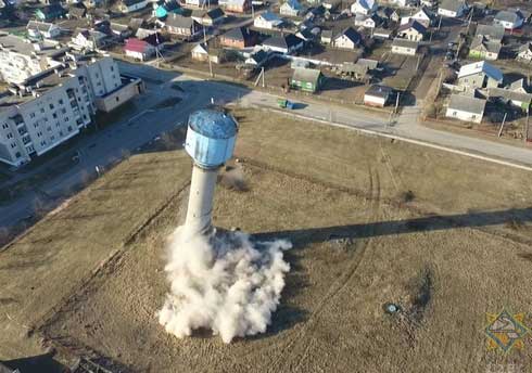 В Ляховичах взрывом демонтировали аварийную водонапорную башню, сообщает МЧС Республики Беларусь.