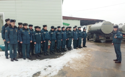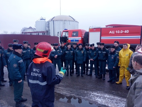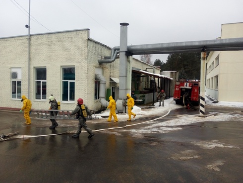 Практическая часть включала в себя проведение тактико-специальных учений на химически опасном объекте Вилейский филиал ОАО «Молодечненский молочный комбинат». По замыслу: «В помещении компрессорной произошла разгерметизация линейного ресивера с последующим выбросом аммиака». С поставленной задачей личный состав подразделений справился успешно.
