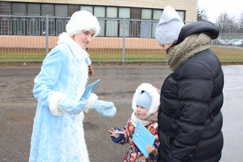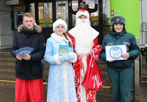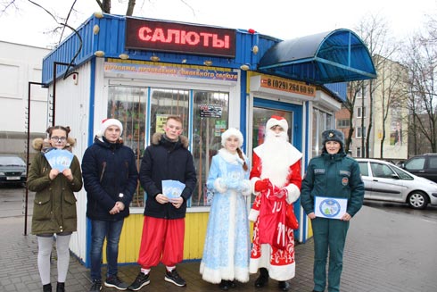У месцах продажаў піратэхнічных вырабаў з’яўляліся казачныя героі, Дзед Мароз са Снягуркай і праводзілі з пакупнікамі піратэхнікі прафілактычныя гутаркі, раздавалі наглядна-выяўленчую прадукцыю па бяспечным выкарыстанні піратэхнікі, прапаноўвалі зрабіць фота, нагадвалі адрас сайта МНС, дзе будуць размешчаны фатаграфіі і карысная, навучалая інфармацыя.