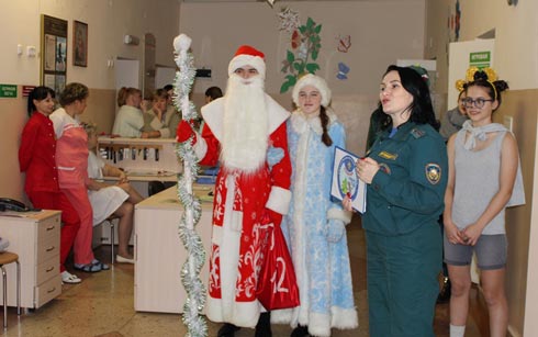 Таксама на дадзеным этапе ратавальнікі сумесна з Дзедам Марозам, Снягуркай і казачнымі персанажамі, актывістамі ДУА «Вілейская Гімназія №2», наведалі дзіцячае аддзяленне ўстановы аховы здароўя «Вілейская ЦРБ», дзе дзеці знаходзіліся на стацыянарным лячэнні. Дзед Мароз, Снягурка, Мядзведзь, Мышы і Пятрушка правялі забаўляльную конкурсную праграму, выслухалі падрыхтаваныя вершы, правялі віктарыну і ўручылі карысныя прызы і падарункі.