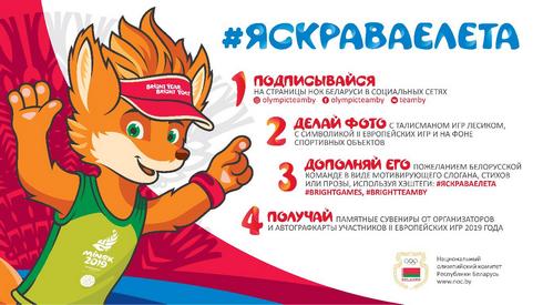 22 мая стартует акция в поддержку белорусской команды на II Европейских играх «Яскравае лета!», сообщает пресс-служба НОК Беларуси.