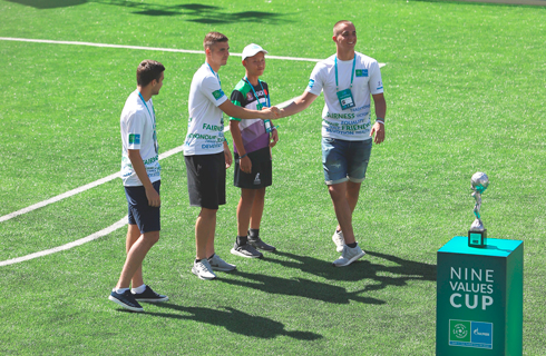 Кубок «Девяти ценностей» – это ежегодная награда программы «Футбол для дружбы». В 2015 году Кубок «Девяти ценностей» был создан известным немецким скульптором Ахимом Риппергером. Скульптура представляет собой фигуру Юного футболиста, держащего в руках Земной шар в виде футбольного мяча. Она символизирует одну из ключевых целей международной программы «Футбола для дружбы», заключающуюся в продвижении среди юного поколения базовых общечеловеческих ценностей.