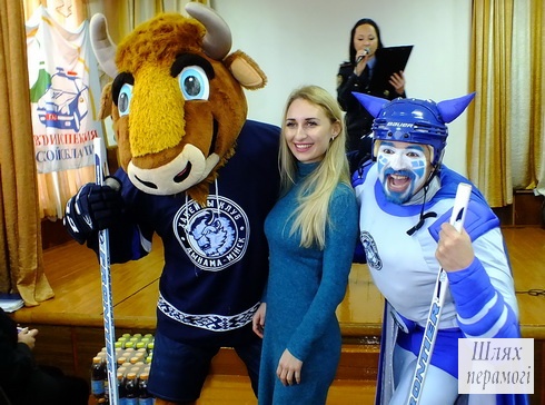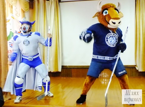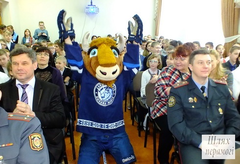 Сюрпризом для ребят стало шумное и яркое появление персонажей-символов хоккейного клуба «Динамо-Минск». А ещё – приглашение на игру, которая состоится в конце февраля, от ведущего специалиста по маркетингу ЗАО «Хоккейный клуб «Динамо-Минск» Виктории Юрченко. Эту новость воспитанники школы-интерната встретили зажигательной хореографической композицией под аккомпанемент известной песни «Потолок ледяной, дверь скрипучая».