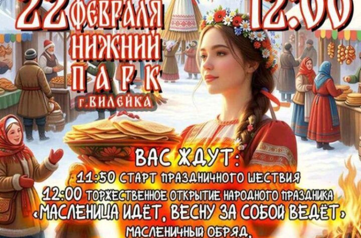 22 февраля в Нижнем парке в Вилейке пройдет народный праздник Масленица. Начало мероприятия запланировано...