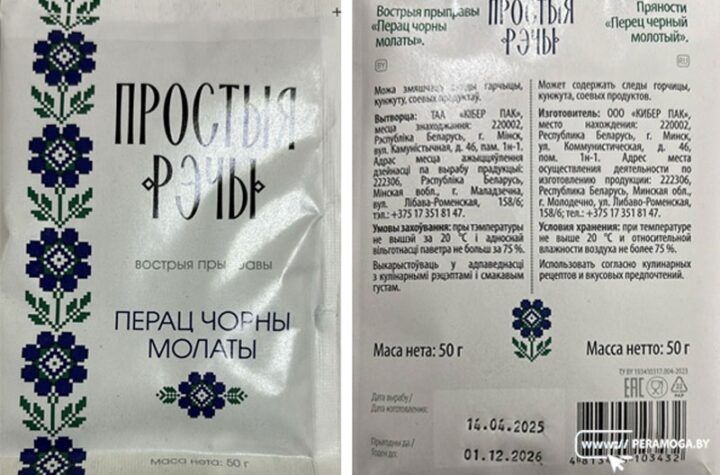 При проведении проверки у субъекта хозяйствования Минской области выявлена опасная продукция: пряность «Перец черный...