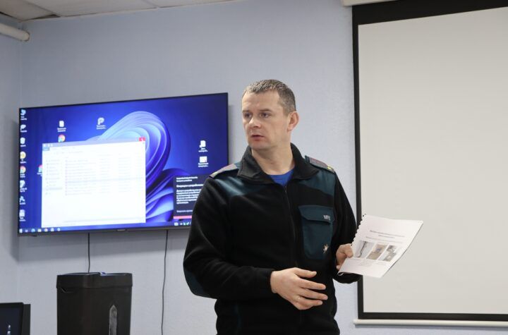 Заместитель начальника Вилейского районного отдела по чрезвычайным ситуациям Евгений Комаров провел встречу с трудовыми...