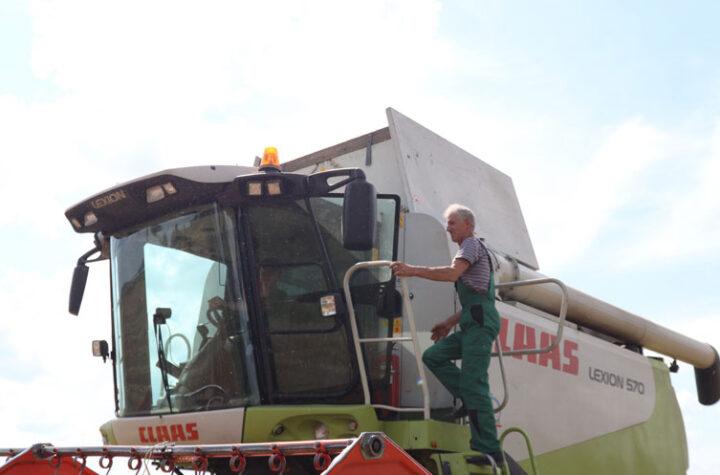 Едва сходит роса с полей, принимаются за работу комбайны. Гудят, стараясь до зёрнышка убрать...
