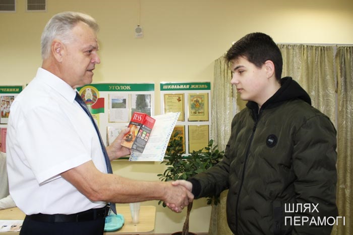 50-м избирателем в этот день стал Пётр Зайцев – легенда профессионального спорта Вилейщины, тренер-преподаватель по прыжкам на батуте, подготовивший немало победителей и призёров международных соревнований, в том числе двукратного чемпиона Европы, финалиста юношеских Олимпийских игр Ивана Литвиновича. Сегодня учащиеся и воспитанники Петра Ивановича входят в состав национальной и сборной команды Беларуси по прыжкам на батуте, а сам тренер-преподаватель удостоен высокого звания – «Человек года Вилейщины-2018». Сладкий сувенир и подписку на первый квартал 2020 года на нашу газету вручил Петру Зайцеву председатель участковой комиссии Николай Гиро.