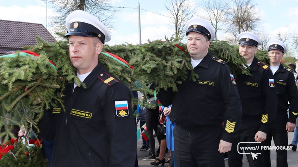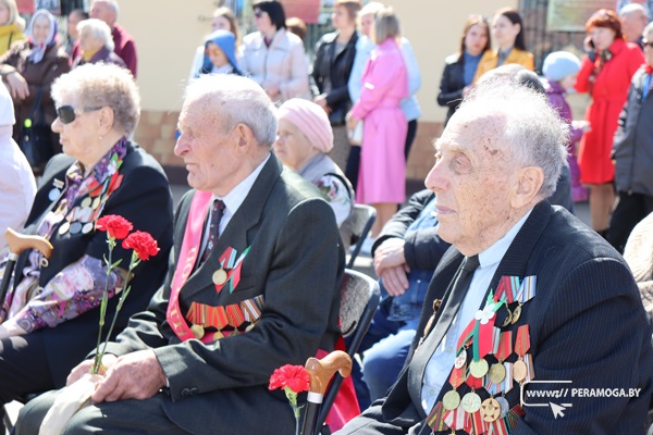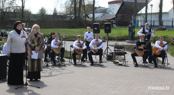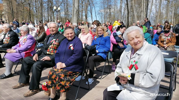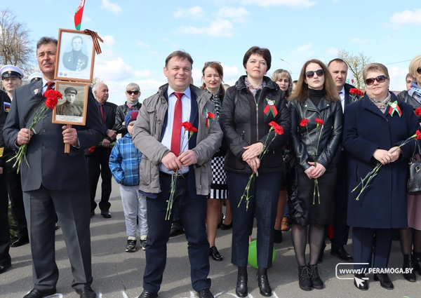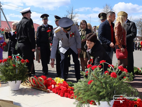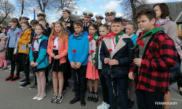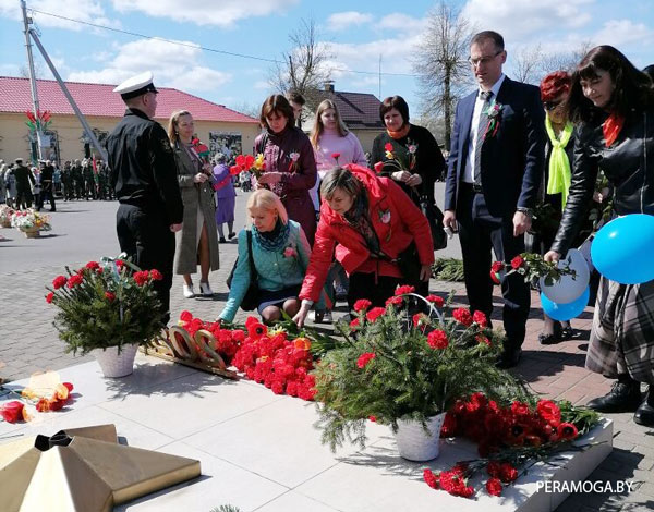 Участниками торжественного митинга были и несовершеннолетние узники фашистских концлагерей – очевидцы событий, воспоминания о которых не стёрло время. Как не стёрли секунды, минуты и десятилетия память о павших на войне: для них – минута молчания, для них – цветы у обелиска. Ярким росчерком на его фоне остались алеть свежесрезанные тюльпаны: крепкой нитью связаны поколения белорусов.