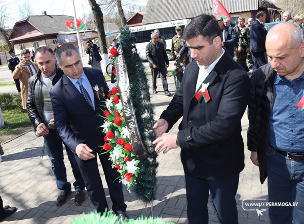 С Днём Победы поздравили вилейчан и представители азербайджанской делегации во главе с первым секретарём посольства Азербайджанской Республики в Республике Беларусь Давидом Рашид оглы Ибаевым и председателем культурно-просветительского общественного объединения «Гобустан» Бахши Акифовичем Ганбаровым. Вместе с вилейчанами они приняли участие в возложении цветов к памятнику воинам-освободителям на площади Свободы и к памятнику дважды Героя Советского Союза, гвардии генерала-майора Ази Ахадовича Асланова на улице Советской. Там же, у детской библиотеки, работала выставка «Спасибо за победный май!», проводились викторины, работал ретрокинозал.