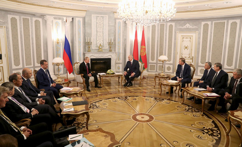 Президент Беларуси Александр Лукашенко и Президент России Владимир Путин провели переговоры в узком составе. Они обсудили состояние и перспективы развития двусторонних отношений, реализацию совместных проектов, взаимодействие в интеграционных форматах и на международных площадках.