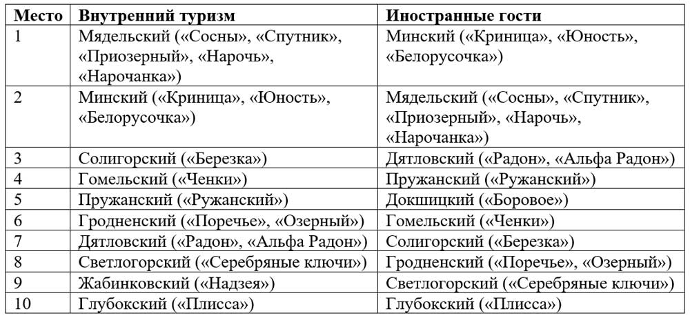 Компания МТС проанализировала цифровую активность абонентов в крупнейших белорусских здравницах и составила рейтинг наиболее привлекательных регионов с точки зрения оздоровительного туризма. Лидером у белорусов стал Мядельский район, а иностранные туристы чаще выбирают отдых недалеко от Минска.