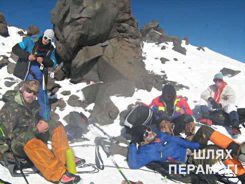 – Мы выбрали вариант восхождения на Восточную вершину Эльбруса с севера. Есть еще маршруты с юга, востока и запада. Наш вариант более сложный, нежели, скажем, южный маршрут. На последнем есть возможность доехать на ратраках до высоты 4800 метров и оттуда начинать восхождение. Мы же выбрали более сложный маршрут, и менее людный, соответственно. Хотя людей все же хватало. Начали путь с поляны Эмануэля (2600 м). Здесь разбили лагерь и провели несколько радиальных выходов. Это необходимо для акклиматизации, чтобы не свалила «горняшка» (горная болезнь, проявляющаяся головными болями, тошнотой, расстройствами желудка). Организм должен привыкнуть к разреженному горному воздуху. Ходили на водопады Султан, Эмир, Хан, к термальным нарзанным источникам – в долину Джилы Су. Оставаться подольше возле источников не было желания – слишком много людей. До этого места есть хорошая дорога, поэтому многие приезжают сюда, чтобы подлечиться. Рассказывают, что принятие минеральных ванн в Джилы Су очень благотворно сказывается на деятельности почек, печени и других внутренних органов, кто-то приезжает сюда подлечить суставы.