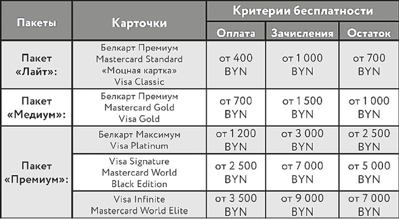 Обслуживание карточных пакетов предполагает ежемесячную комиссию. Теперь подход меняется: клиент сам может влиять на стоимость обслуживания. Речь идёт о критериях бесплатности – при их выполнении обслуживание становится бесплатным.