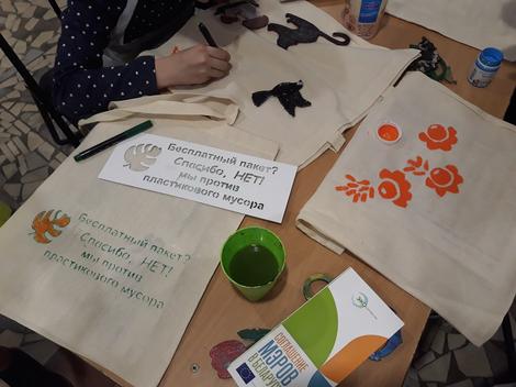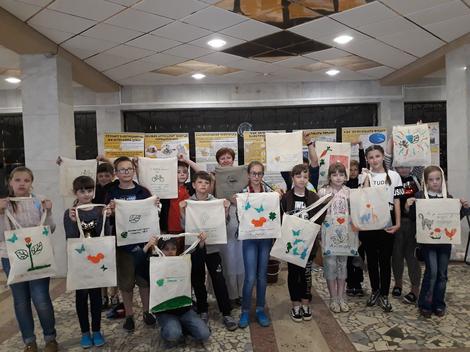 В завершении акции дети пытались выразить свои экоидеи через рисунки на хлопчатобумажные сумках, которые помогут детям и их родителям приобретать товары, не покупая очередной пластиковый пакет на кассе.