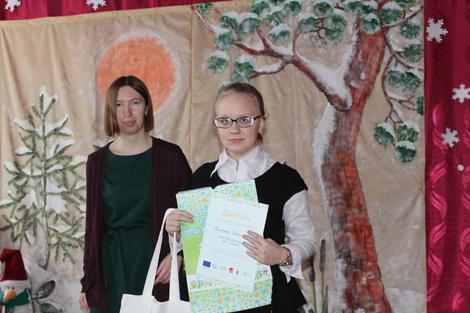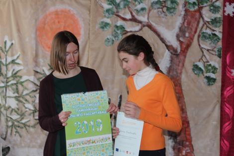 Награждение победителей конкурса рисунков о правильном обращении с отходами прошло в актовом зале районного центра дополнительного образования детей и молодёжи. Поздравить ребят с победой в конкурсе и вручить им экологические сумки с подарками специально приехала пресс-секретарь МОО «Экопартнерство» Алеся Чумакова. Но главной наградой для каждого юного художника стало вручение настенных календарей с их авторскими рисунками. Кстати, этот календарь будет бесплатно распространяться на территории Вилейского района.