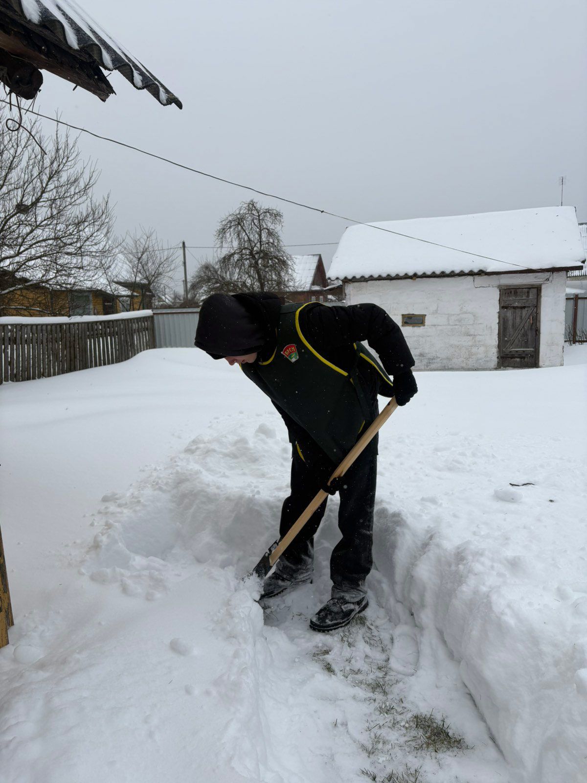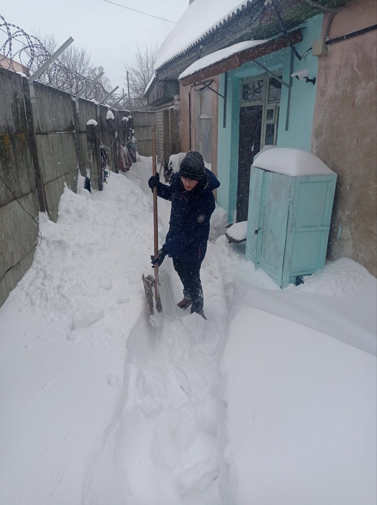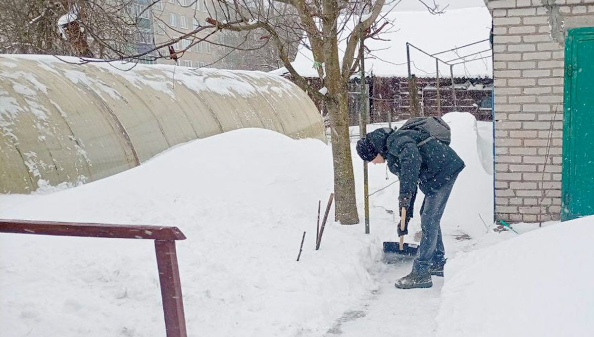 Эстафета добра шагает по Вилейке: волонтеры помогают пожилым людям в очистке дворов от снега