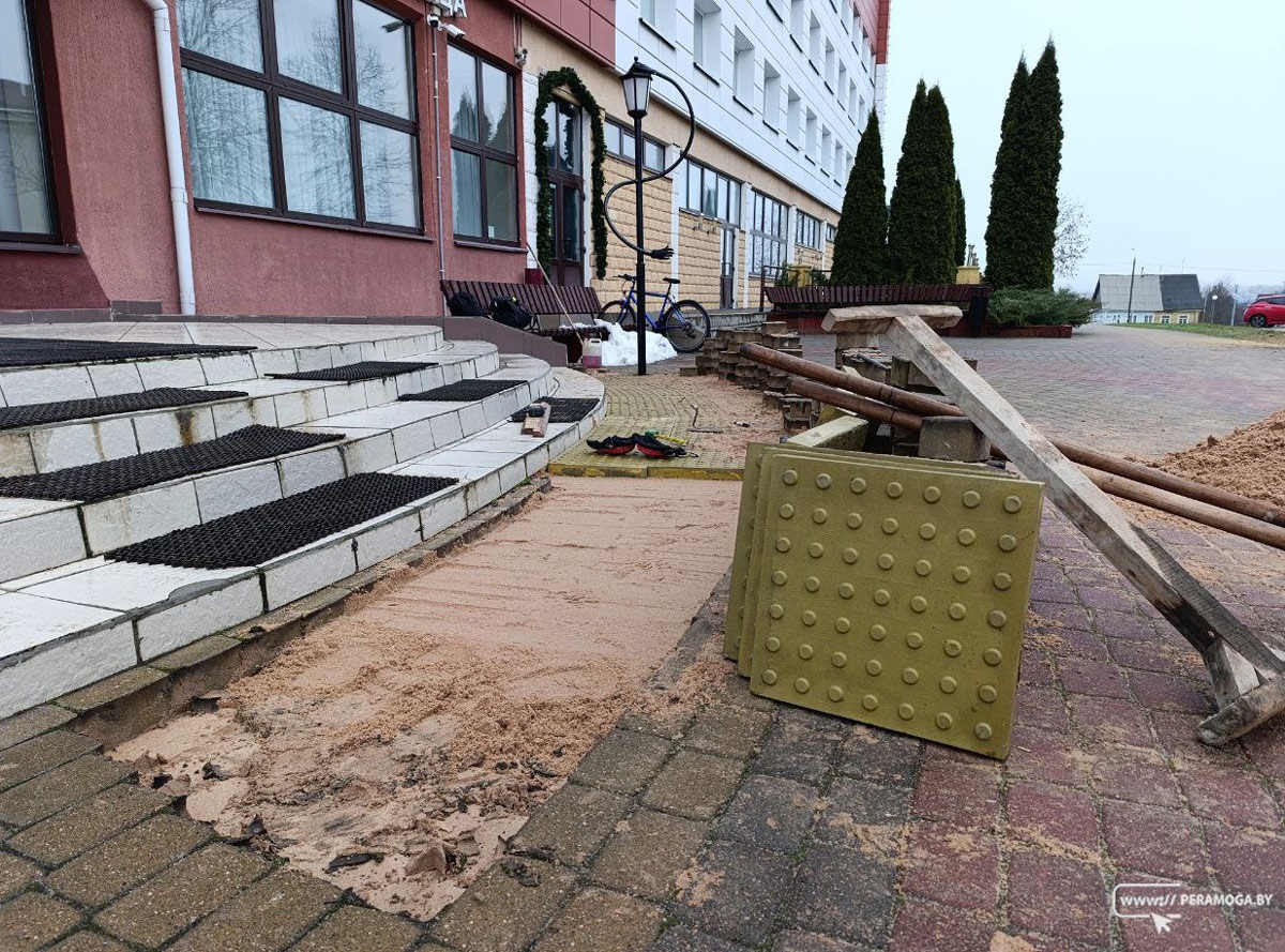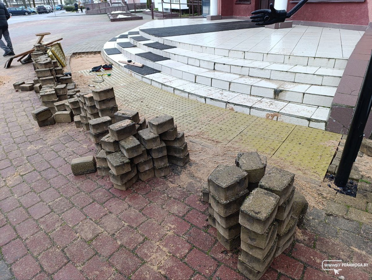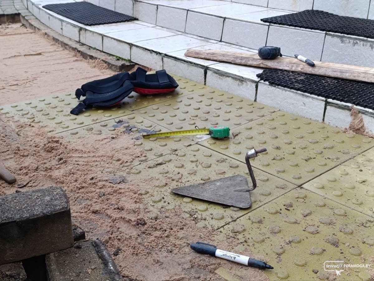 Коммунальщики продолжают работы по укладке тактильной плитки в Вилейке.