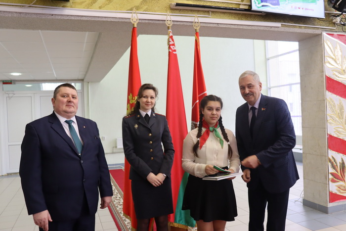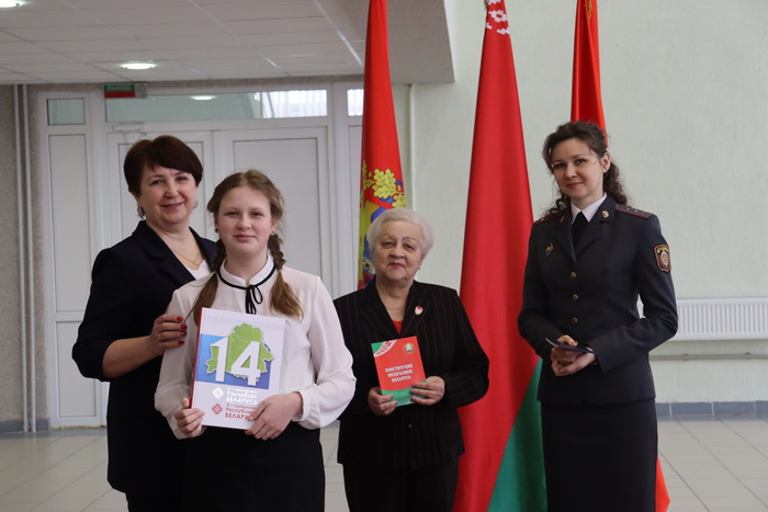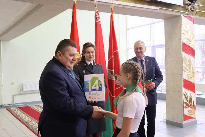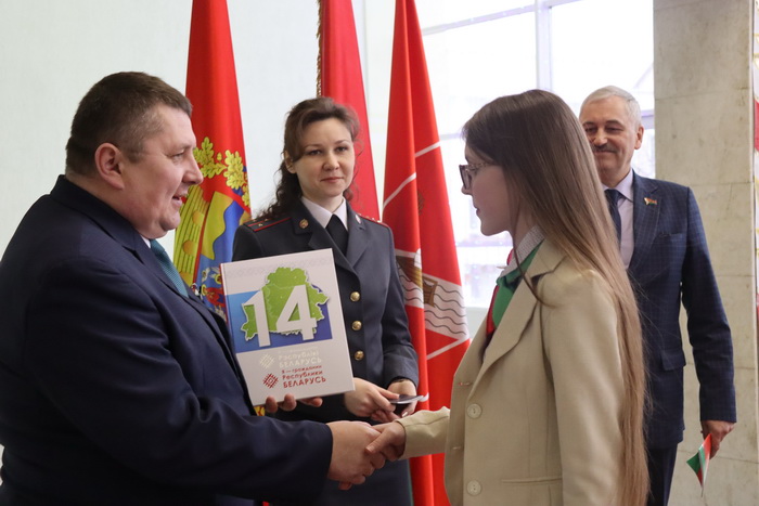 Разам з дэпутатам Мінскага абласнога Савета дэпутатаў дырэктарам Ільянскай сярэдняй школы імя А.Грымаця Ігарам Юшко, і начальнікам аддзялення па грамадзянству і міграцыі аддзела ўнутраных спраў Вілейскага райвыканкама Таццянай Зібровай старшыня райвыканкама Алег Бегунец, акрамя пашпарта кожнаму юнаку і дзяўчыне ў падарунак ўручылі маляўнічае ілюстраванае выданне «Я – грамадзянін Рэспублікі Беларусь» і Канстытуцыю.