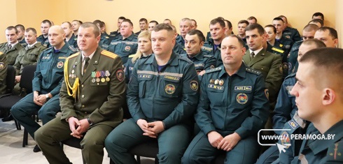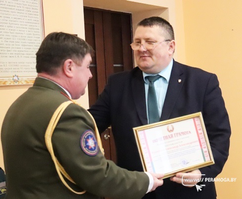 От имени руководителей райисполкома спасатели района получили поздравления с праздником и искренние пожелания никогда не знать усталости и отчаяния, ни за что не отступать перед бедой. Кроме того, два работника районного отдела по чрезвычайным ситуациям «за добросовестный труд, ответственное выполнение служебных обязанностей» были поощрены грамотами Вилейского РИК.