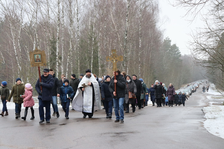 По традиции из Покровской церкви, что размещается в микрорайоне Волковщина, после службы многие верующие Крестным ходом пошли к берегу Вилейского водохранилища. С пением псалмов и праздничных тропарей Крестный ход прошелся по улице Стахановской, по тому участку, который ведет от церкви к городскому пляжу на водохранилище. Освящение воды в заранее подготовленной спасателями, которые в этот день отмечают свой профессиональный праздник, но как всегда на вахте, полынье (Иордани) совершил настоятель храма Покрова Пресвятой Богородицы отец Вячеслав. После этого он окропил всех собравшихся агиасмой. Все участники процессии, а также многочисленные собравшиеся, с благодарностью принимали на себя брызги воды из Иордани на Вилейском водохранилище.