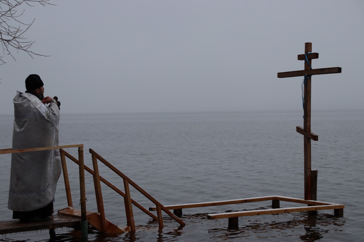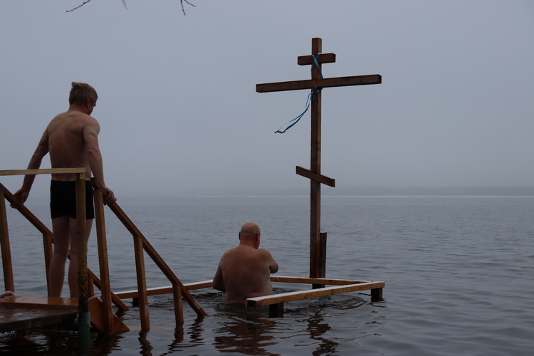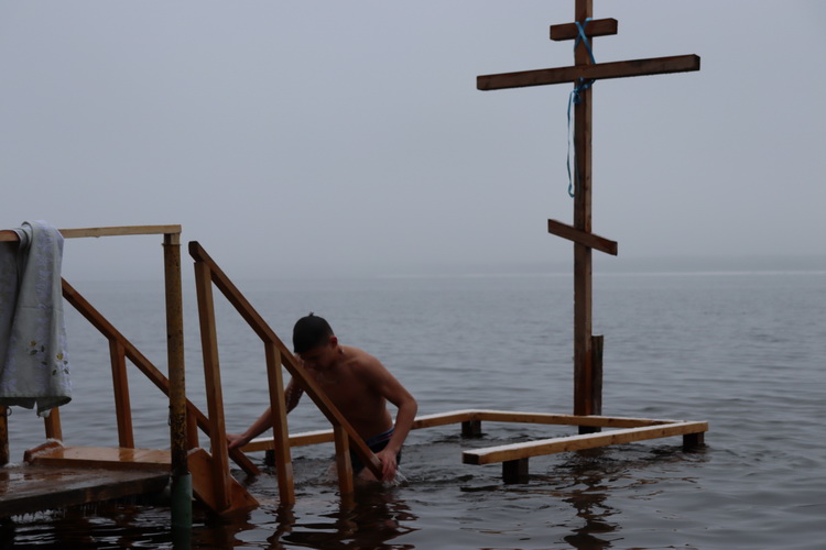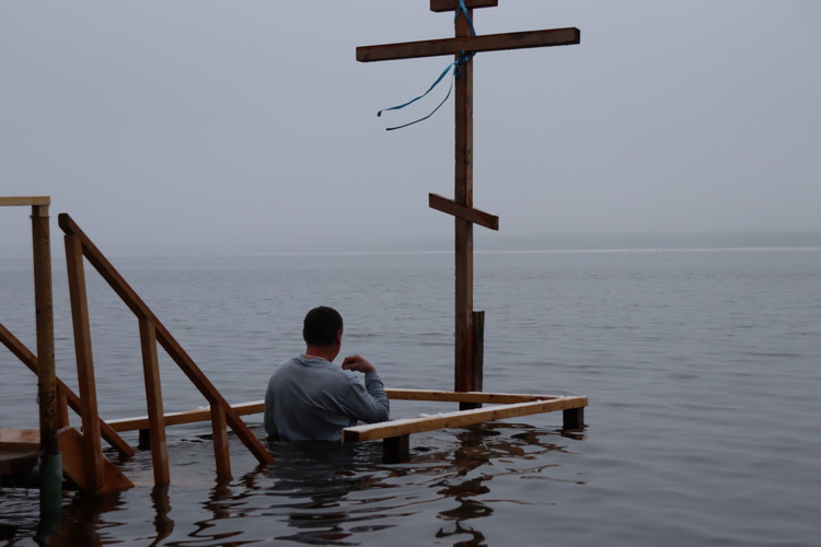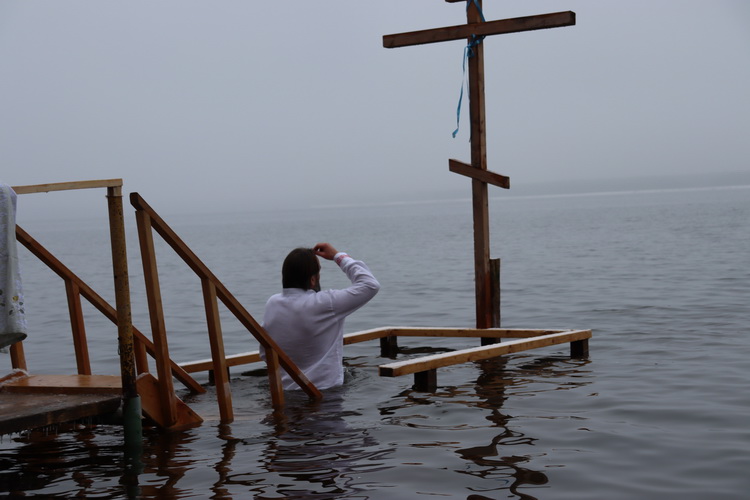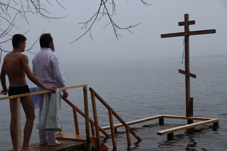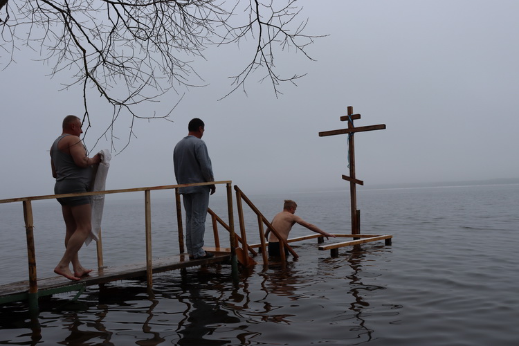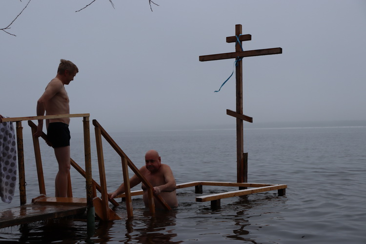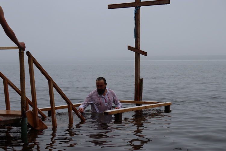 После освящения в купель на водохранилище стали окунаться самые смелые. И первым, как всегда, окунулся отец Вячеслав, обратившись перед этим к верующим и отметив, что не надо доказывать себе и окружающим, что мы что-то можем, а делать это необходимо осознанно, с Верой и Благодарностью к Богу – ведь главное очищение молитвой, постом и праведными делами.